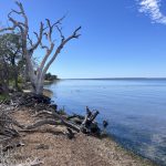 Weil es Sonntags den 8. März, den zweiten Tag auf dem Hipcamp, fast ununterbrochen regnete, hatte ich mich ja mit dem verfassen des letzten Berichtes beschäftigt. Weil mich meine netten Campernachbarn für diesen Abend zum Abendessen eingeladen hatten, fuhr ich am Nachmittag, nachdem der Bericht online war, schnell noch zum Supermarkt nach Merimbula um ein Gastgeschenk zu besorgen. Da der Supermarkt schon Osterhasen im Angebot hatte, packte ich für Emily, Rich und die beiden Hunde jeweils einen Schokoladenhasen 🐇🐇🐇🐇 ein, außerdem dachte ich das ein Sixpack Bier auch nicht so schlecht wäre. Gegen 18:30 Uhr ging ich zu Emily und Rich rüber, die mich mit Lachs einen lecker angemachten Salat und frischen Austern überraschten, delikatiöus! Der einzige Wermutstropfen war das schlechte Wetter, Emily bemühte sich redlich das Feuer in der Feuerschale am brennen zu halten, doch der Regen machte ihr da einen ordentlichen Strich durch die Rechnung. Weil es nach einiger Zeit richtig ungemütlich wurde, lösten wir unsere Essensrunde auf und ich musste mich von meinen reizenden Gastgebern verabschieden, weil Emily und Rich ganz sicher noch schlafen, wenn ich am nächsten Morgen aufbrechen werde. Und so war es dann auch, als ich um 9:30 Uhr vom Platz fuhr, regte sich bei Emily und Rich noch nichts. Nach einer halben Stunde kam ich bei meinem nächsten Ziel, dem Küstenörtchen Eden, an. Hier musste man unbedingt das Eden Killerwal Museum gesehen haben. Das Zentrum des Museums ist das ausgestellte Skelett eines alten Killerwales mit dem Namen „Old Tom” (siehe Titelbild). Als der Walfang im 19. Jahrhundert noch voll im Gange war, sind die Walfänger eine Allianz mit den Killerwalen eingegangen. Damit die Walfänger die Wale leicht harpunieren konnten, hatten die Killerwale mit dem Rudelführer „Old Tom” die Walherden in die vor Eden liegende große Bucht „Twofold Bay” getrieben. Ein stilles Gesetz war, dass als Lohn die Killerwale die Zungen und Lippen der erlegten Wale zu fressen bekamen. Nach dem ausgedehnten Museumsbesuch erkundete ich noch die Umgebung von Eden mit dem Rad, was ganz schön anstrengend bei den steil ansteigenden Straßen in Eden war. Da die eigentliche Walfängerstation und der „Boyds Tower” auf der anderen Seite der riesigen Bucht „Twofold Bay” waren, musste ich mit dem Camper von Eden aus nochmal 30 km fahren, um diese historische Stätten besichtigen zu können. Am späten Nachmittag fuhr ich zu meiner nächsten Übernachtungsmöglichkeit, dem 100 km entfernten ausgedientem Campingplatz am Cann River Rainforest, der jetzt als freier Campingplatz ausgewiesen war. Als ich dort um 18 Uhr ankam, war der Platz schon ziemlich gefüllt, aber einige Plätzchen waren noch übrig. Nach einer ruhigen Nacht fuhr ich am Morgen circa 100 km weiter bis zum Städtchen Lakes Entrance. Hier hatte ich vor über die Cunninghame Arm Foot Bridge mit dem Rad den Hummocks Walk zu befahren, von wegen befahren, der Weg war sehr schmal, sandig und mit vielem störenden Wurzelwerk und zu allem Ungemach kam noch dazu das es laufend Treppenstufen hoch und runter gab, wo ich das Rad tragen musste. Im Endeffekt war es eigentlich logisch, dass ich mich bei dieser Konstellation kopfüber auf die Fr… legen musste. Zum Glück landete ich im Sand und hatte nur Abschürfungen am Arm. Nach diesem nicht Fahrrad tauglichem Walk, suchte ich mir nur noch asphaltierte Wege in Lakes Entrance aus, machte noch den Eastern Beach Walking Track und fuhr kurz nach Mittag weiter zu dem beschaulichen Ort Metung, natürlich schwang ich mich auch hier auf mein Rad, doch plötzlich hakte das rechte Pedal und machte komische Knackgeräusche, irgendetwas stimmte da nicht, das Pedallager hatte die Grätsche gemacht. Ich konnte noch gerade so zurück zum Camper radeln, packte das Rad ein und fuhr erstmal zu dem Campingplatz den ich schon morgens reserviert hatte und wo ich spätestens vor 16 Uhr einchecken musste. Über Google Maps schaute ich ob es in der Nähe ein Fahrradgeschäft gab, wo ich eventuell neue Fahrradpedale bekam. Nur 10 km entfernt in der größeren Stadt Bairnsdale wurde ich fündig. Dort gab es einen sehr gut ausgestatten Bike Shop, die nicht nur die passenden Klapppedale hatten und diese auch noch direkt montierten. Das Ganze kostete nur schlappe 30 AUD das war perfekt! Zurück am Lake King Waterftont Holiday Park genehmigte ich mir nach drei Tagen Abstinenz erstmal eine Dusche und nahm die Gelegenheit wahr, meine dreckige Wäsche zu waschen. Der Caravanpark ist nur 5km von der Insel Raymond Island, die auch als Koala Island bekannt ist, entfernt. Am nächsten Morgen machte ich mich nach einem Müslifrühstück mit dem Rad auf und fuhr zur Fähre die einem auf die Insel, für Fußgänger und Fahrräder sogar umsonst, übersetzen konnte. Direkt bei der Landung auf der Insel saß auf dem ersten Baum ein Koalabärchen und schlief in einer Astgabel. Da die Insel nur 6 km breit und 7 km lang war, fuhr ich fast jede Ecke des Eilands ab, teilweise über schwer befahrbare sandige Wege, dabei hatte ich noch 3 Koalas in den Eukalyptusbäumen entdeckt und nach fast vier Stunden rumradeln kam ich wieder an der Fähre an. Weil ich nach der anstrengenden Fahrradtour auf Raymond Island komplett unterhopft war, genehmigte ich mir in einem Pub in Paynesville zwei kühle Kaltschalen bevor es zurück zum Caravanpark ging. Morgen werde ich wahrscheinlich dann die restliche Strecke von 350 km bis Melbourne über die A1 fahren, weil es zwischendurch nicht mehr soviel Interessantes auf der Strecke zu sehen gibt.